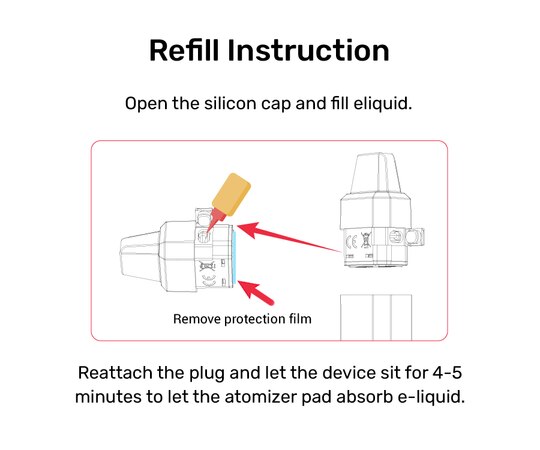 To refill your SHIFT Vape POD, remove the silicon plug from the side of a blank cartridge (POD) and fill the POD with the e-liquid of your choice. Reattach the plug and let the device sit for 4-5 minutes to let the atomizer pad absorb e-liquid.