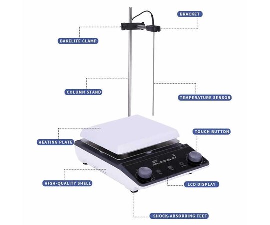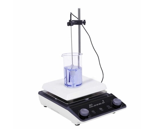 The Professional Hot Plate magnetic mixer or magnetic stirrer with temperature control is a laboratory device that employs a rotating magnetic field to cause a stir bar immersed in a liquid to spin very quickly, thus stirring it.