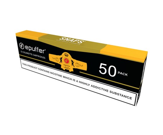 Experience the bold character of ePuffer SNAPS® Robusto Tobacco Cartomisers, now offered in a value 50-pack bulk carton. Blending Cuban tobaccos, Golden Virginia, and a hint of dark chocolate notes, the Robusto profile delivers a cigar-inspired vapour that is both aromatic and deeply satisfying. Designed for the SNAPS® cigalike e-cigarette system, this bulk carton is perfect for vapers who want authentic tobacco flavour with the savings of buying in bulk.