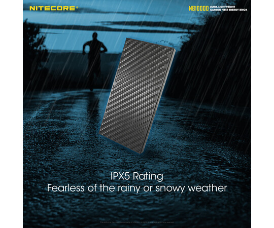 The carbon fiber case makes the NB10000 highly resistant to puncture, abrasion, and impact. Additionally the NB10k is IPX5 rated water resistant, and comes with a slew of safeguards against short-circuit, overcharge, over discharge, or overheat.