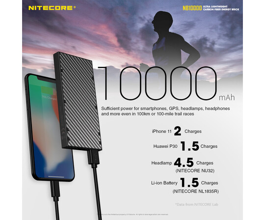 The Nitecore NB10000 power bank has an extraordinary 10,000mAh battery that can charge a base iPhone 11 or a Samsung s10 three times. Embodying all this power in a solid carbon fiber body frame, the NB10K is 40% lighter than conventional power banks, while smaller and thinner than a phone, with a sleek modern minimalist design. The NB10000 is the ultimate portable backup battery charger for road warriors, outdoor enthusiasts who enjoy trail running, hiking or camping, or first responders who are on an extended search and rescue mission. It is also a great additional to your emergency prep kit or bug-out-bag.