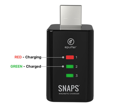 The ePuffer SNAPS® REV-5 TRIO USB Quick Charger brings innovation and efficiency to your vaping experience. Specially designed for the SNAPS REV-5 rechargeable e-cigarette batteries, this charger also supports REV-4 models, ensuring flexibility and convenience.